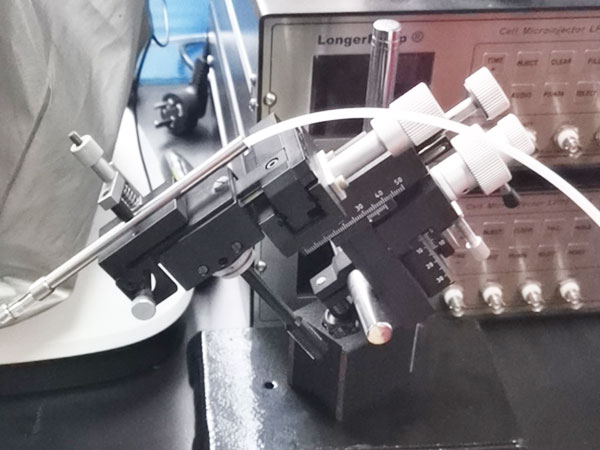 主要在生物實驗室使用,實現(xiàn)向細(xì)胞內(nèi)注射皮升級液體(DNA,熒光染料等物質(zhì)的溶液)